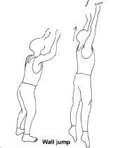 Pulo na parede: coloque um pedaço de fita adesiva cerca de 2 metros acima de sua cabeça. Fique de frente a parede e tente tocar o pedaço de fita com os dois braços para cima. Faça 3 séries de 10.